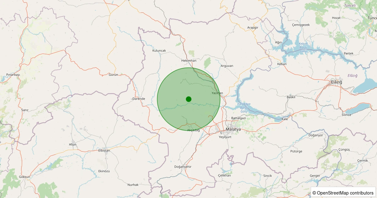 Son 7 gün içinde Yazıhan - Epreme noktasından 100 km yarıçap içerisinde meydana gelen diğer depremler: