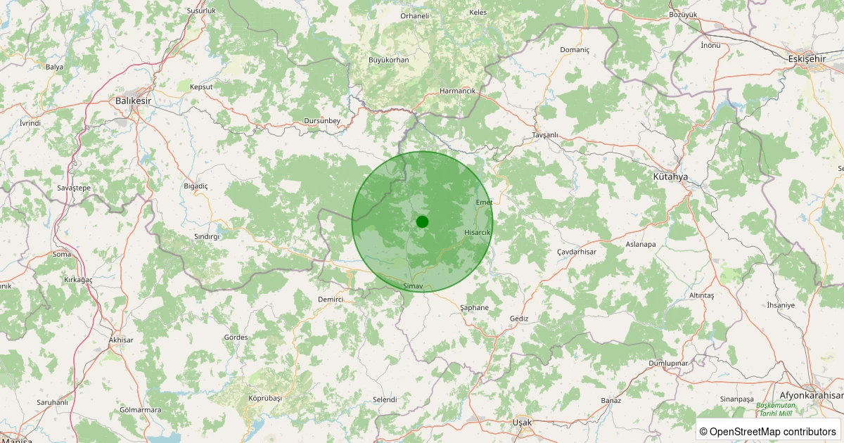 Son 7 gün içinde Simav - Eğdemir Köyü noktasından 100 km yarıçap içerisinde meydana gelen diğer depremler: