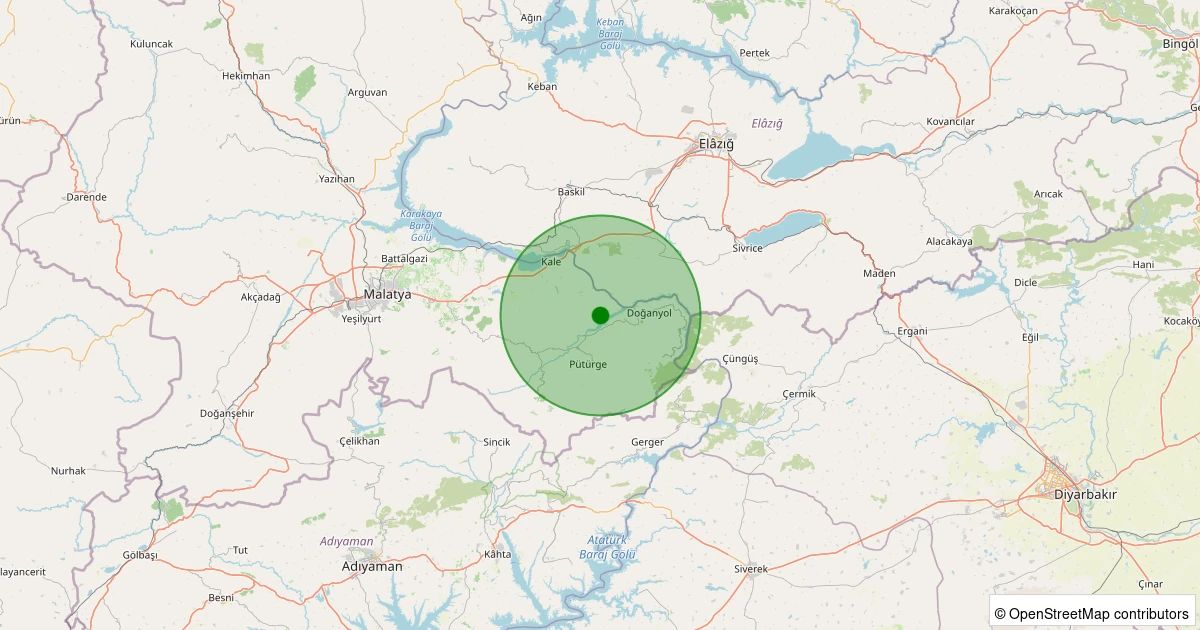 Son 7 gün içinde Pütürge - Çığırlı Köyü noktasından 100 km yarıçap içerisinde meydana gelen diğer depremler: