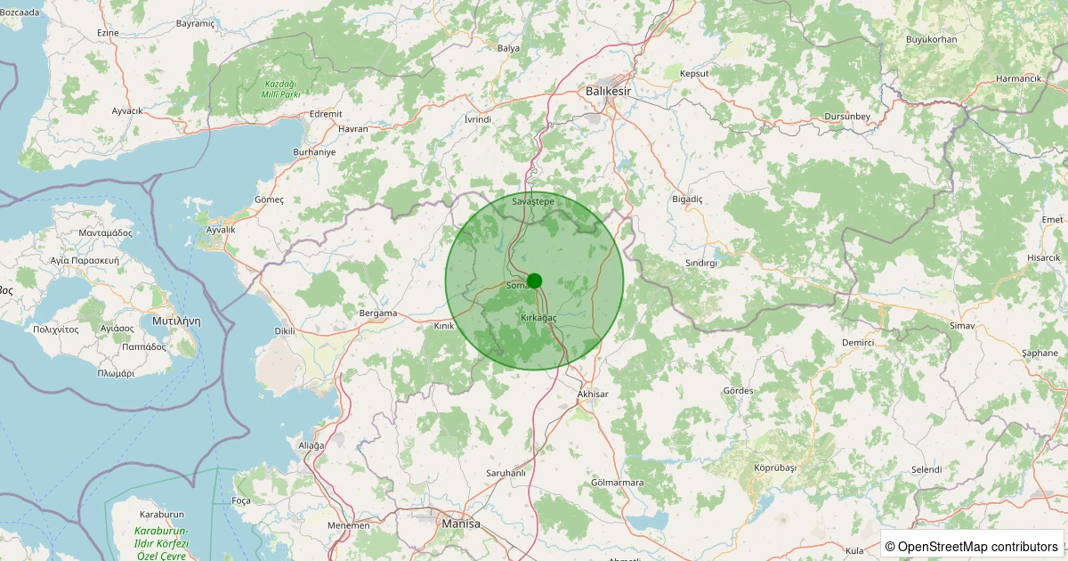 Son 7 gün içinde Soma - Yırca noktasından 100 km yarıçap içerisinde meydana gelen diğer depremler: