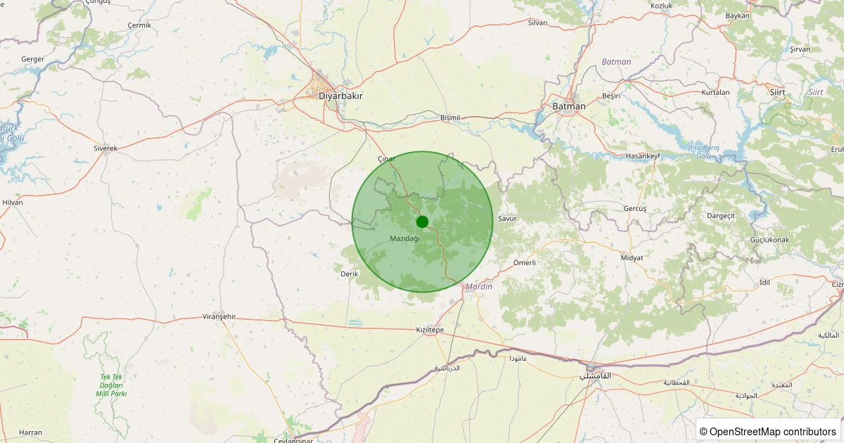 Son 7 gün içinde Mazıdağı - Aksu Köyü noktasından 100 km yarıçap içerisinde meydana gelen diğer depremler:
