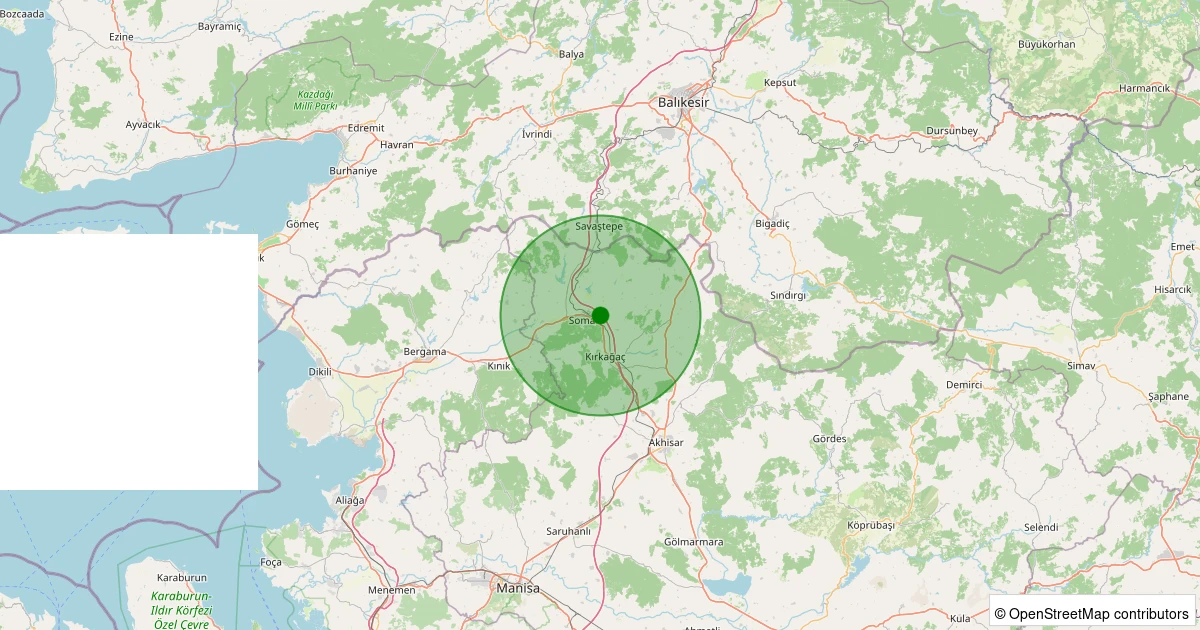 Son 7 gün içinde Soma - Yırca noktasından 100 km yarıçap içerisinde meydana gelen diğer depremler: