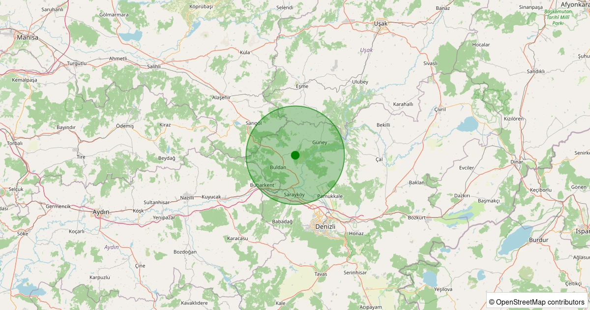 Son 7 gün içinde Buldan - Yenicekent noktasından 100 km yarıçap içerisinde meydana gelen diğer depremler: