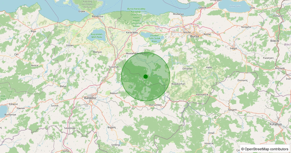 Son 7 gün içinde Mustafakemalpaşa - Güvem noktasından 100 km yarıçap içerisinde meydana gelen diğer depremler: