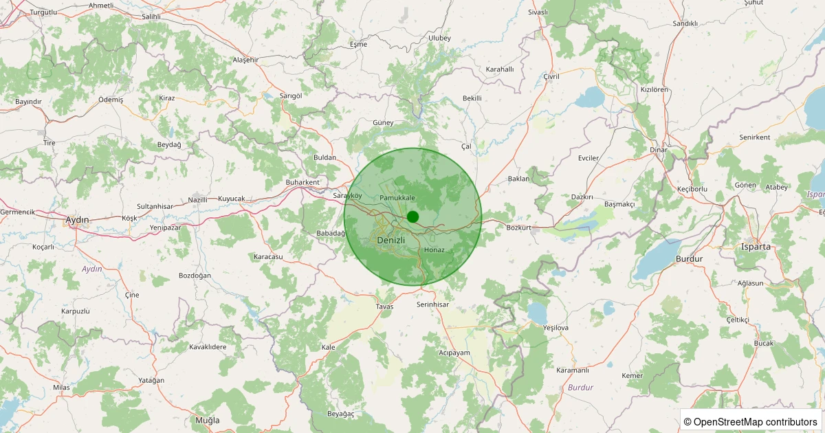 Son 7 gün içinde Pamukkale - Eldenizli Köyü noktasından 100 km yarıçap içerisinde meydana gelen diğer depremler: