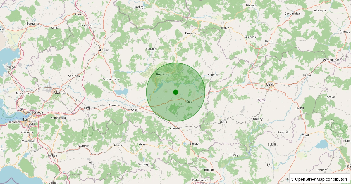 Son 7 gün içinde Kula - Emre noktasından 100 km yarıçap içerisinde meydana gelen diğer depremler:
