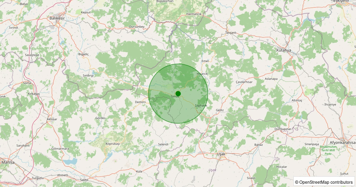 Son 7 gün içinde Simav - Muradınlar noktasından 100 km yarıçap içerisinde meydana gelen diğer depremler: