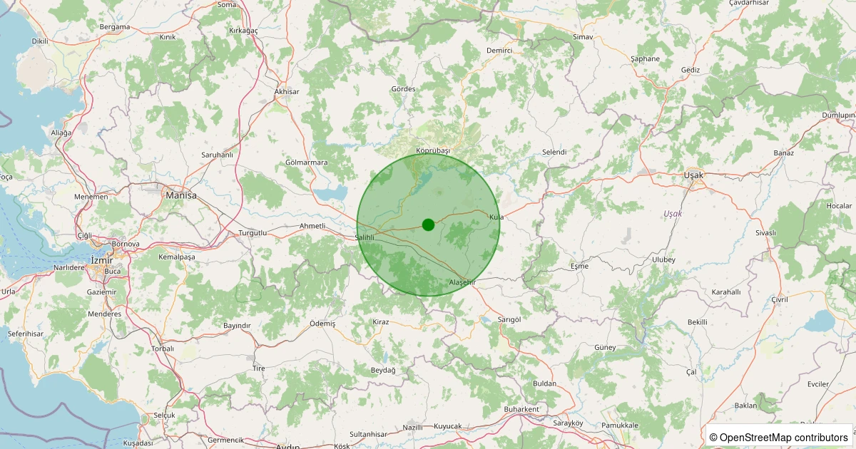 Son 7 gün içinde Salihli - Mersinli noktasından 100 km yarıçap içerisinde meydana gelen diğer depremler: