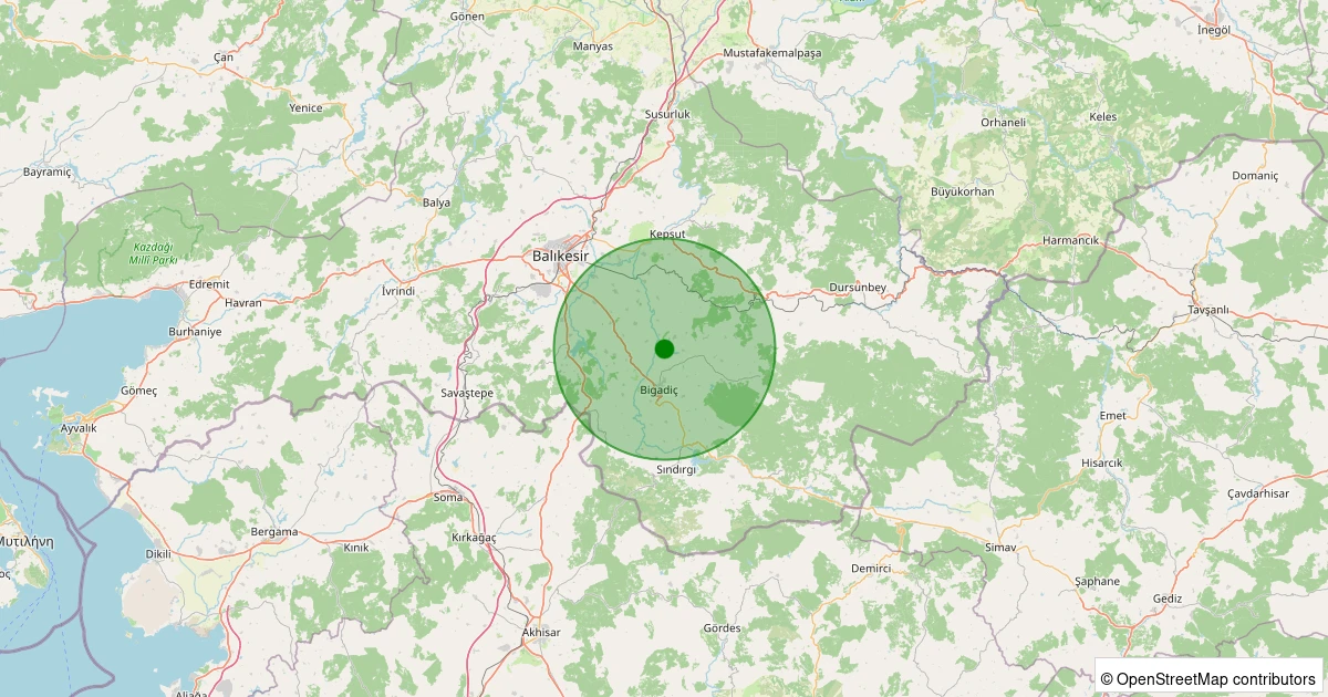 Son bir hafta içerisinde Balıkesir şehri Bigadiç - İskele noktasından 100 km yarıçap içerisinde toplamda 1151 deprem kaydedilmiştir. Bu depremlerden en büyüğü 4.9 büyüklüğünde ve en sığ odaklısı 0.00 kilometre derinlikte gerçekleşmiştir.