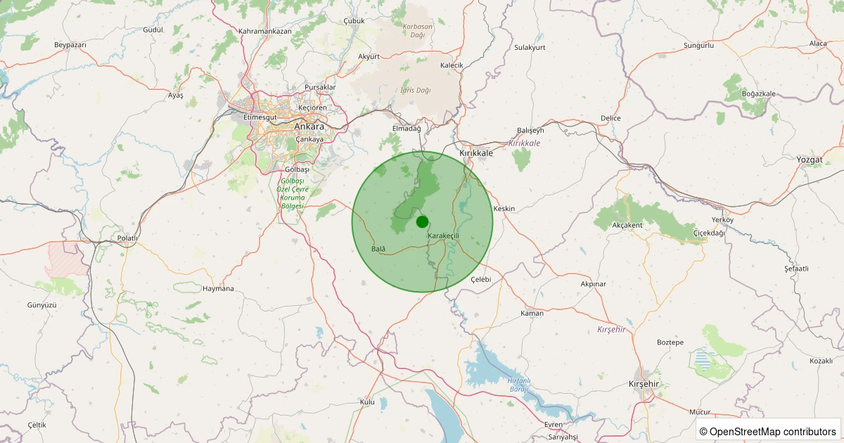 Son 7 gün içinde Bala - Büyükbayat noktasından 100 km yarıçap içerisinde meydana gelen diğer depremler: