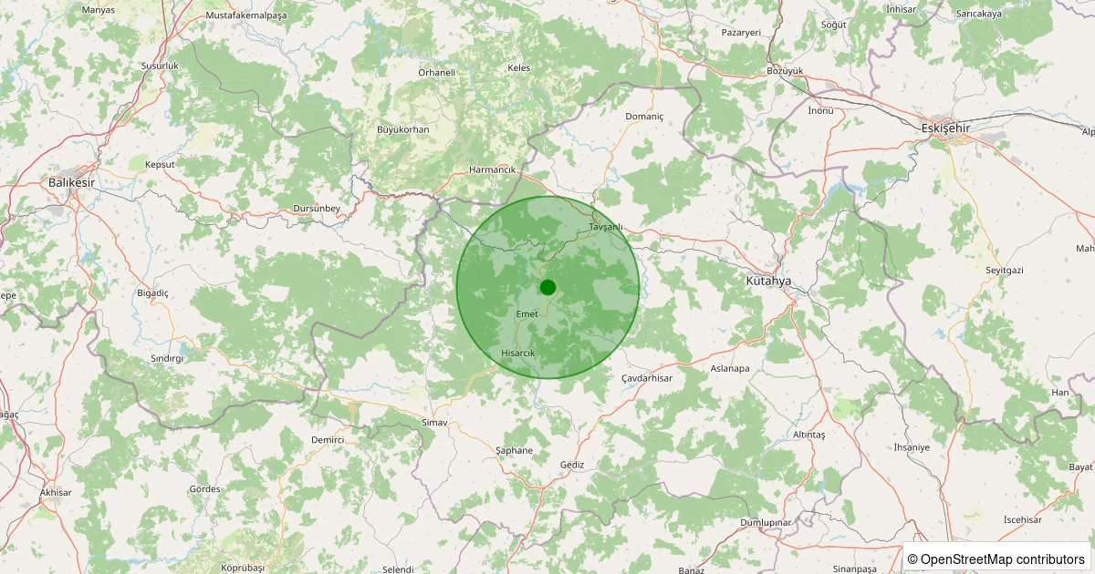 Son 7 gün içinde Emet - Günlüce Merkez noktasından 100 km yarıçap içerisinde meydana gelen diğer depremler: