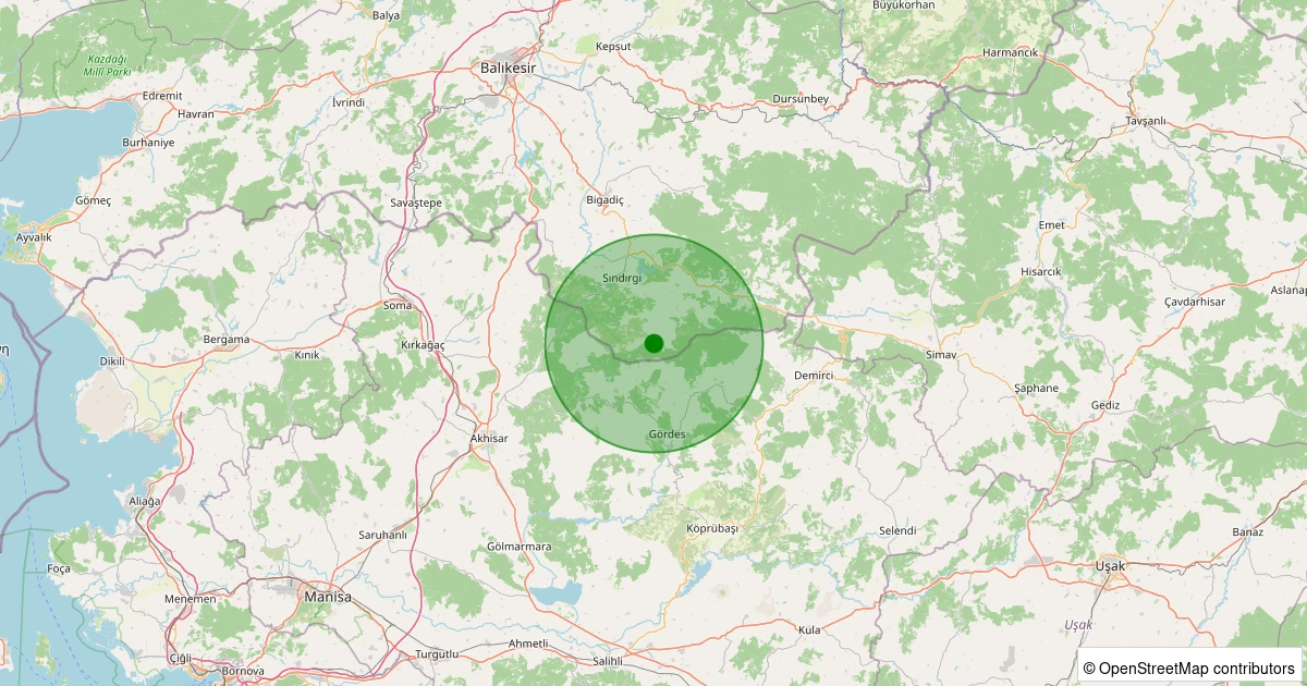 Son 7 gün içinde Sındırgı - Yüreğil/Alan noktasından 100 km yarıçap içerisinde meydana gelen diğer depremler: