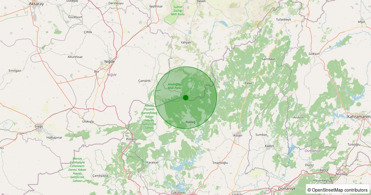 Son 7 gün içinde Yahyalı - Büyük Çakır noktasından 100 km yarıçap içerisinde meydana gelen diğer depremler: