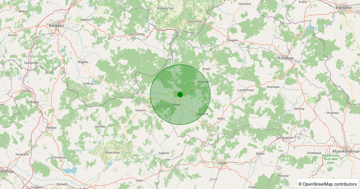 Son 7 gün içinde Simav - Karacaören Köyü noktasından 100 km yarıçap içerisinde meydana gelen diğer depremler: