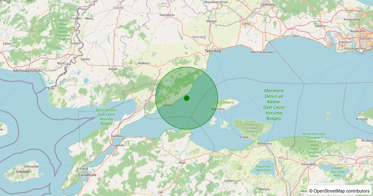 Son bir hafta içerisinde Marmara Denizi - [03.05 km] Şarköy (Tekirdağ) noktasından 100 km yarıçap içerisinde toplamda 31 deprem kaydedilmiştir. Bu depremlerden en büyüğü 2.4 büyüklüğünde ve en sığ odaklısı 4.10 kilometre derinlikte gerçekleşmiştir.