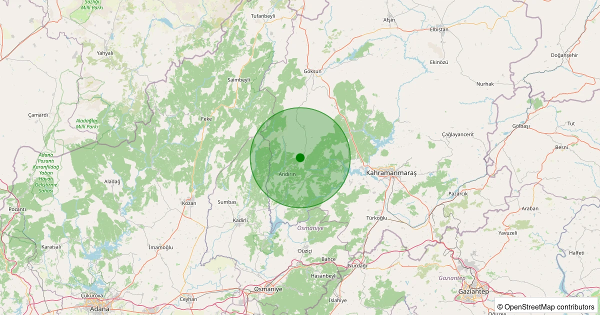 Son 7 gün içinde Andırın - Emirler Köyü noktasından 100 km yarıçap içerisinde meydana gelen diğer depremler: