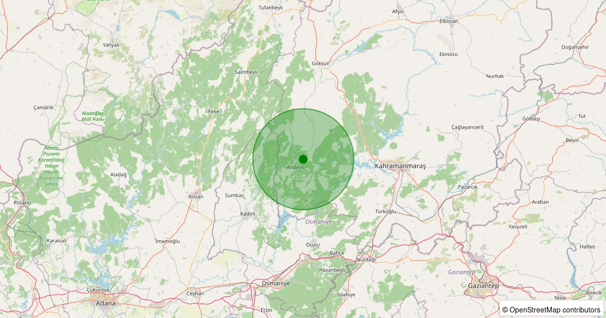 Son 7 gün içinde Andırın - Torlar Köyü noktasından 100 km yarıçap içerisinde meydana gelen diğer depremler:
