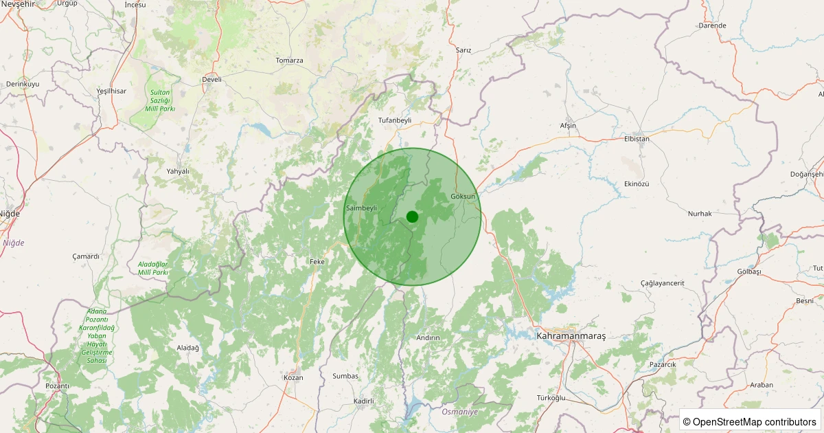 Son 7 gün içinde Göksun - Kaleboynu noktasından 100 km yarıçap içerisinde meydana gelen diğer depremler: