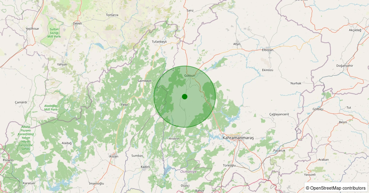 Son 7 gün içinde Göksun - Küçükçamurlu noktasından 100 km yarıçap içerisinde meydana gelen diğer depremler: