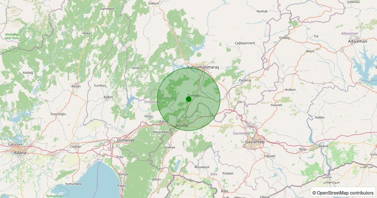 Son 7 gün içinde Türkoğlu noktasından 100 km yarıçap içerisinde meydana gelen diğer depremler: