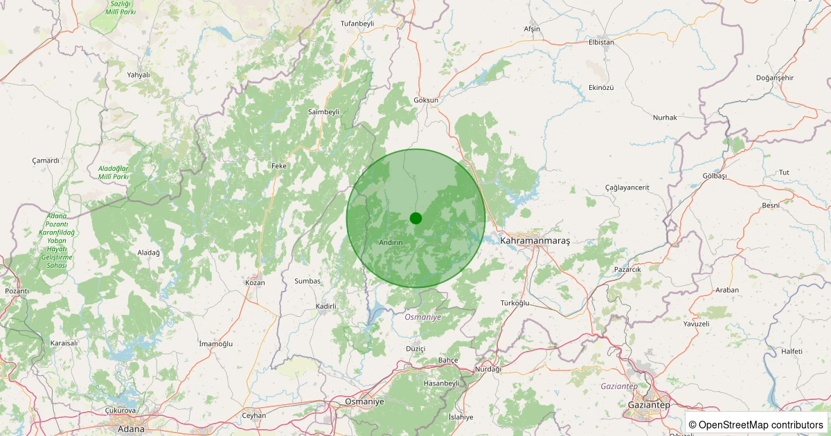 Son 7 gün içinde Andırın - Emirler Köyü noktasından 100 km yarıçap içerisinde meydana gelen diğer depremler: