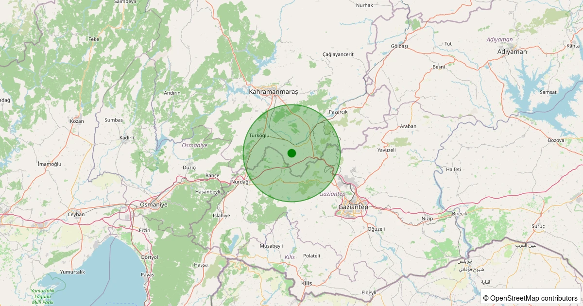 Son 7 gün içinde Kahramanmaraş noktasından 100 km yarıçap içerisinde meydana gelen diğer depremler: