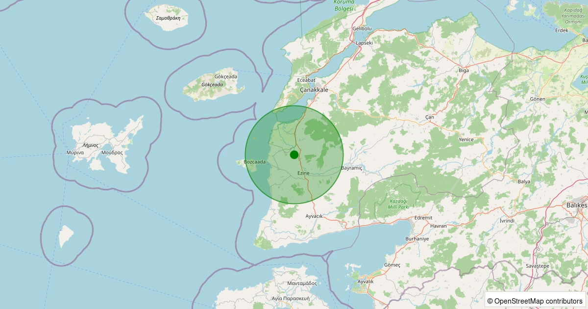 Son 7 gün içinde Ezine - Derbentbaşı Köyü noktasından 100 km yarıçap içerisinde meydana gelen diğer depremler: