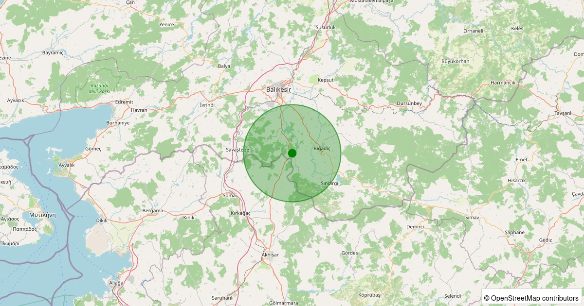 Son 7 gün içinde Sındırgı - Akçakısrak noktasından 100 km yarıçap içerisinde meydana gelen diğer depremler: