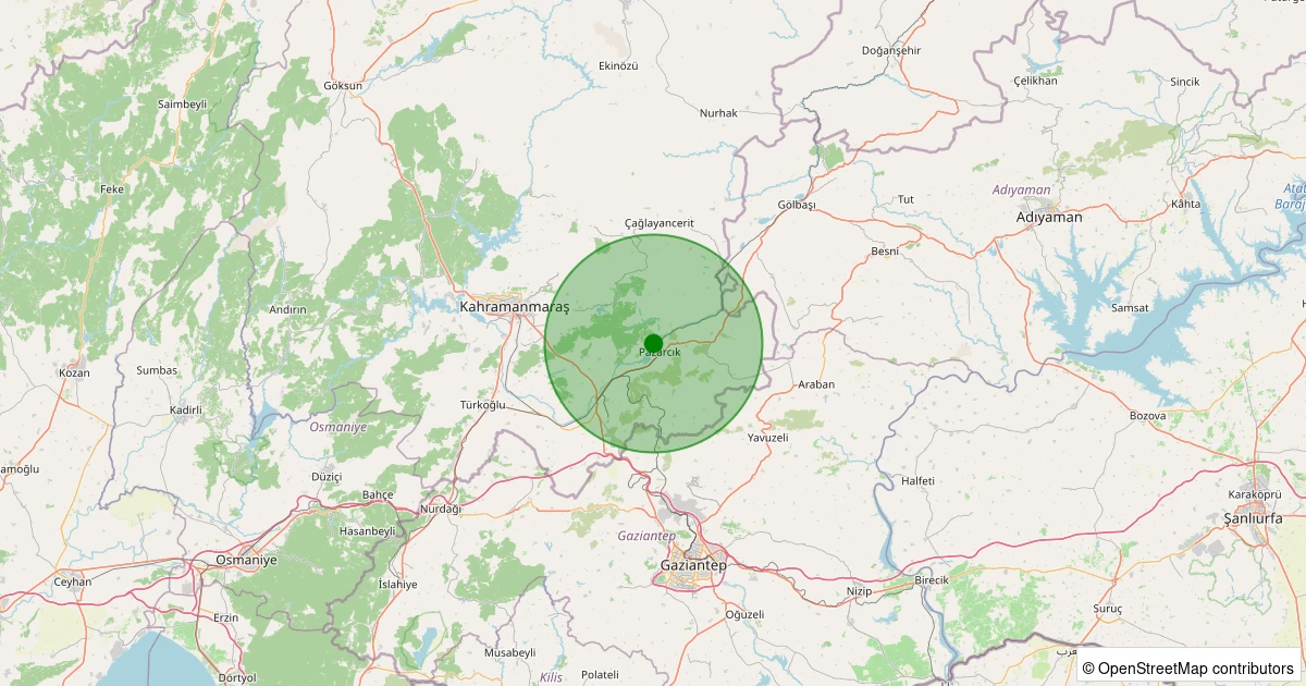 Son 7 gün içinde Pazarcık - Çiçekalanı noktasından 100 km yarıçap içerisinde meydana gelen diğer depremler: