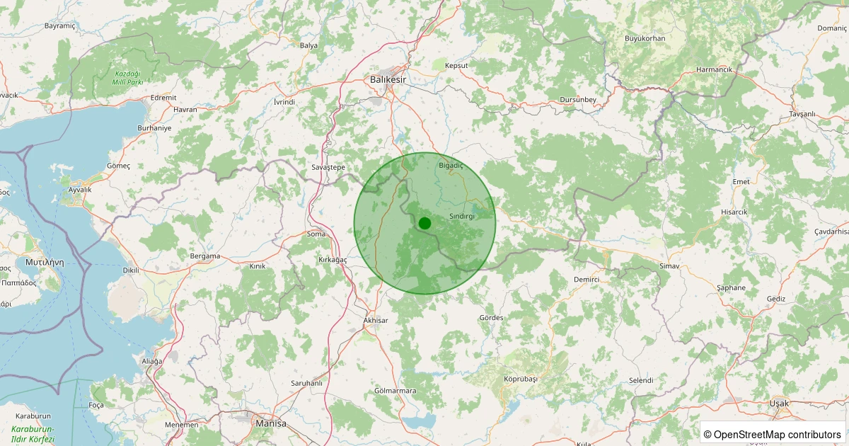 Son 7 gün içinde Sındırgı - Şahinkaya noktasından 100 km yarıçap içerisinde meydana gelen diğer depremler: