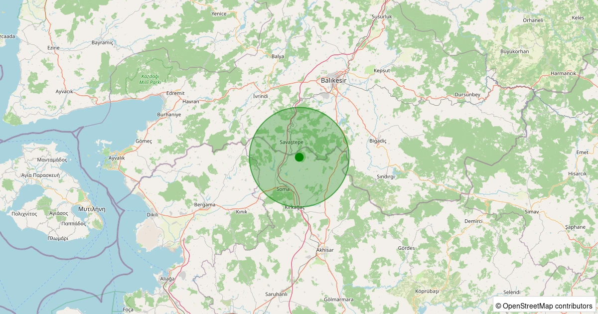 Son 7 gün içinde Soma - Türk Pıyale noktasından 100 km yarıçap içerisinde meydana gelen diğer depremler:
