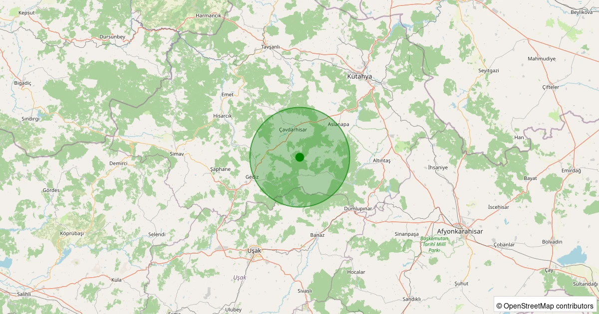 Son 7 gün içinde Gediz - Yağmurlar Köyü noktasından 100 km yarıçap içerisinde meydana gelen diğer depremler: