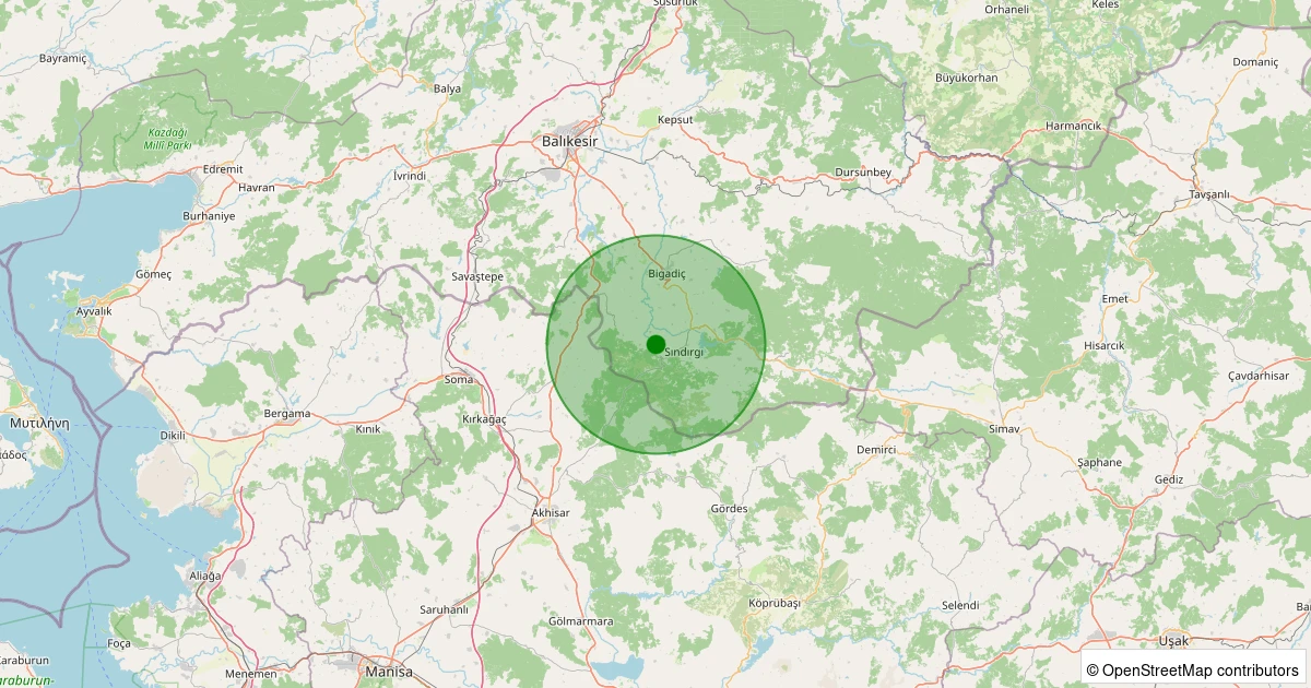 Son 7 gün içinde Sındırgı - Karagür noktasından 100 km yarıçap içerisinde meydana gelen diğer depremler: