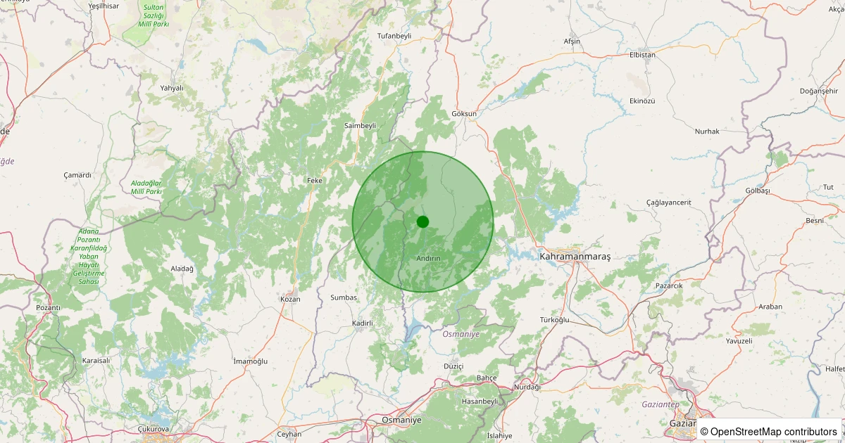 Son 7 gün içinde Andırın noktasından 100 km yarıçap içerisinde meydana gelen diğer depremler: