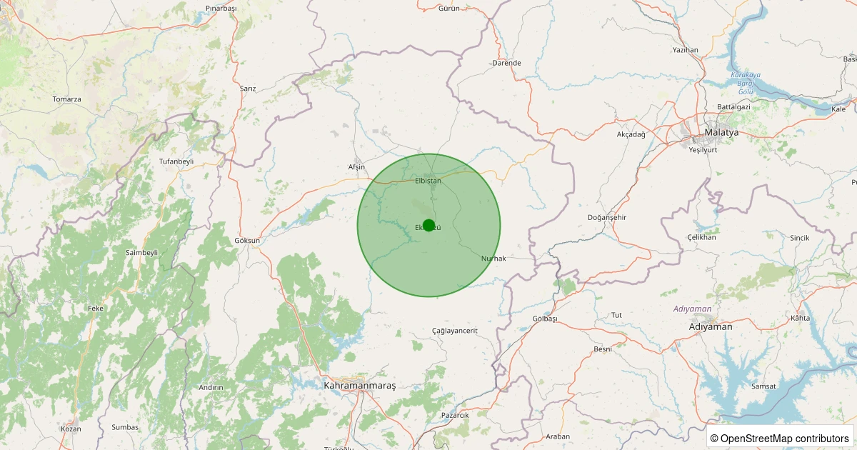 Son 7 gün içinde Ekinözü noktasından 100 km yarıçap içerisinde meydana gelen diğer depremler: