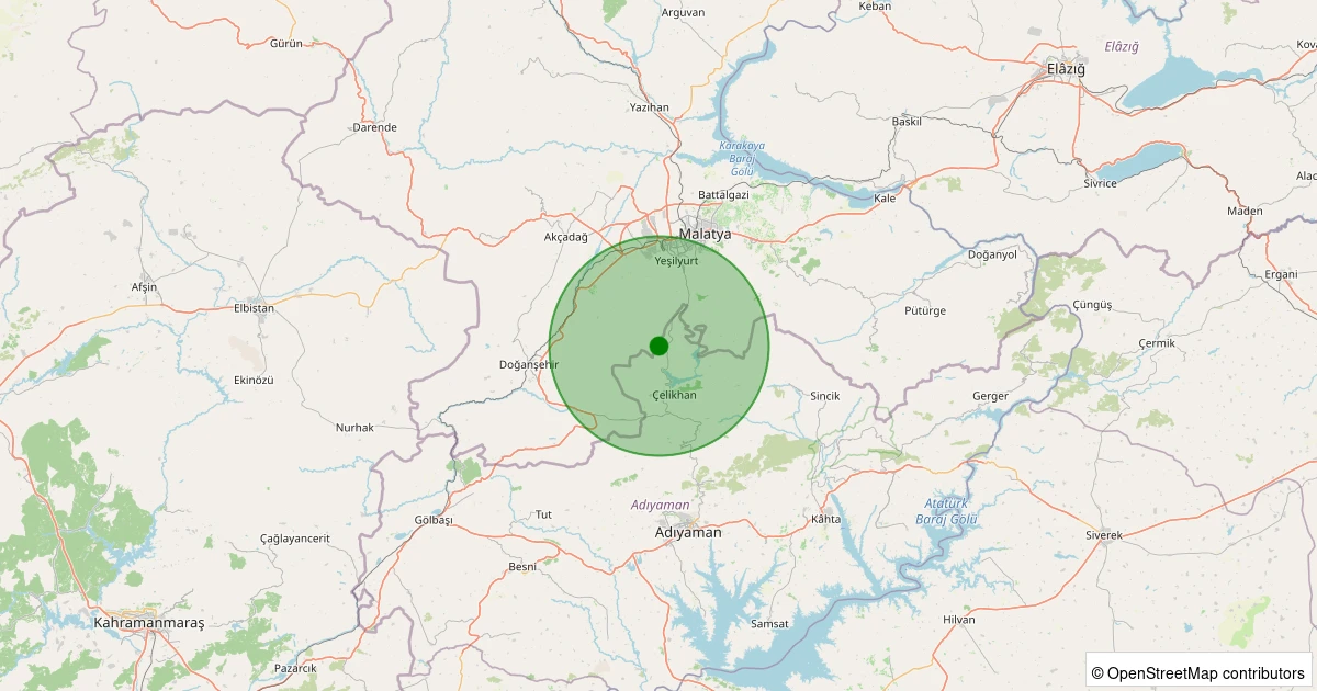 Son 7 gün içinde Çelikhan - Çampınar Köyü noktasından 100 km yarıçap içerisinde meydana gelen diğer depremler: