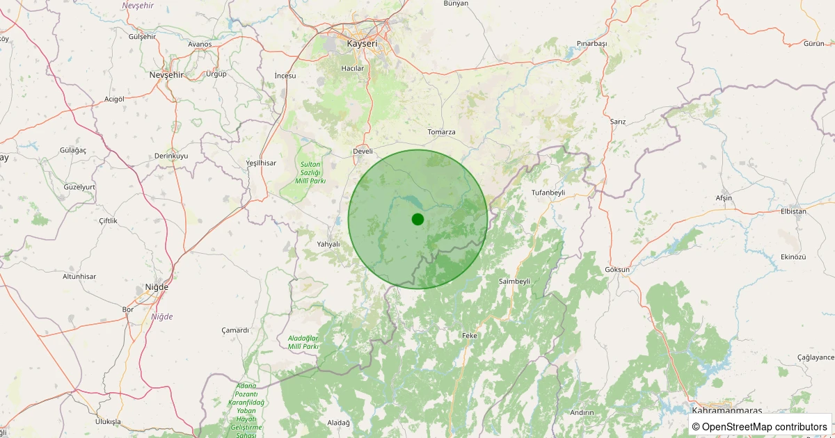 Son 7 gün içinde Develi - Hoşca noktasından 100 km yarıçap içerisinde meydana gelen diğer depremler: