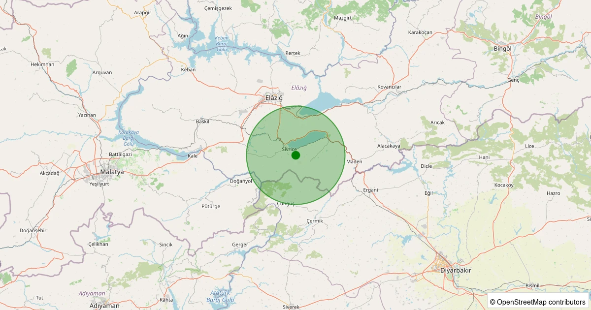 Son 7 gün içinde Sivrice - Karaçalı Köyü noktasından 100 km yarıçap içerisinde meydana gelen diğer depremler: