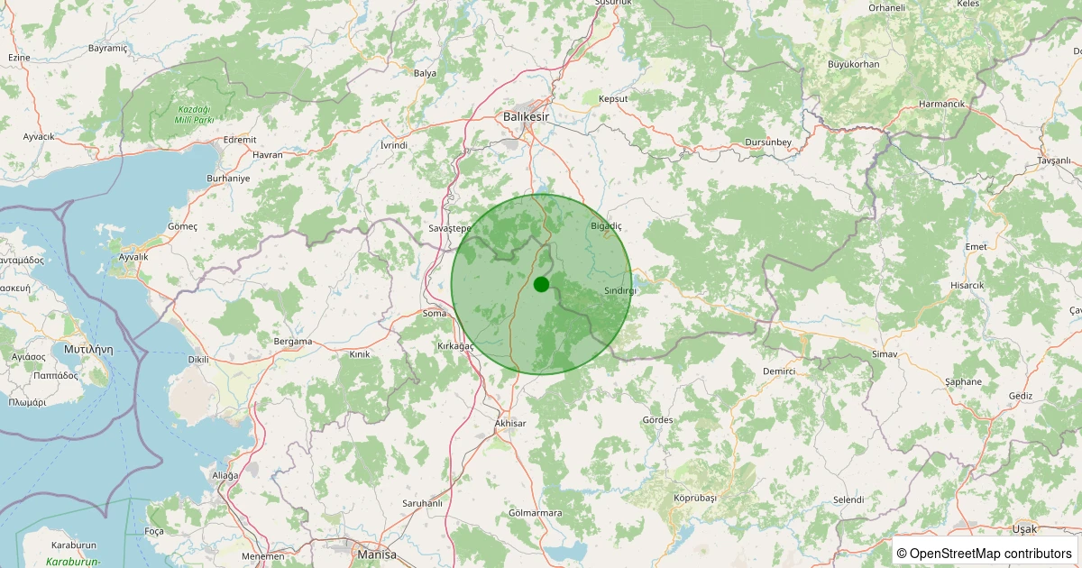 Son 7 gün içinde Sındırgı - Bükrecik noktasından 100 km yarıçap içerisinde meydana gelen diğer depremler: