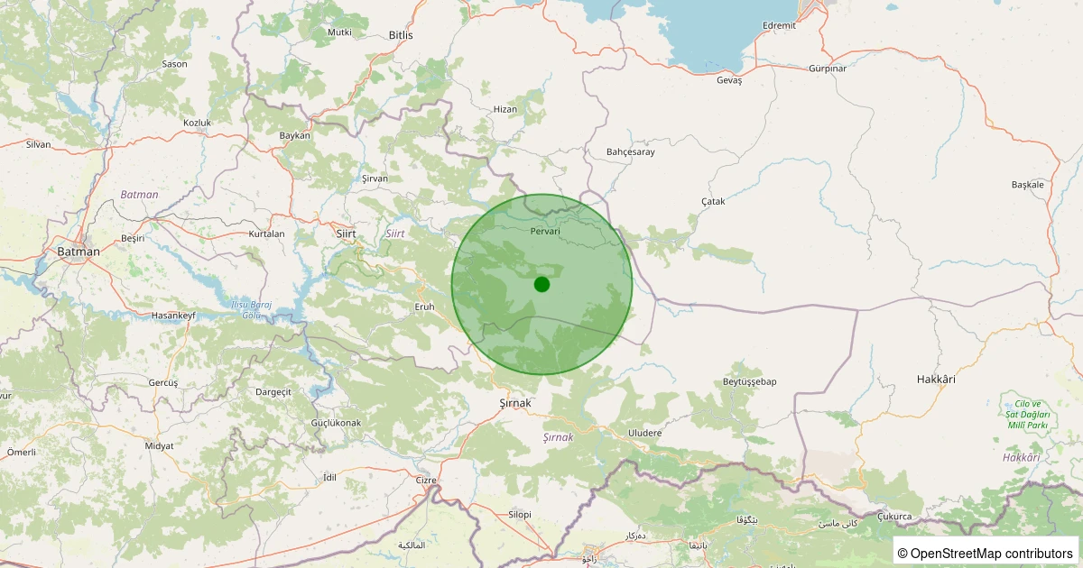 Son 7 gün içinde Pervari noktasından 100 km yarıçap içerisinde meydana gelen diğer depremler: