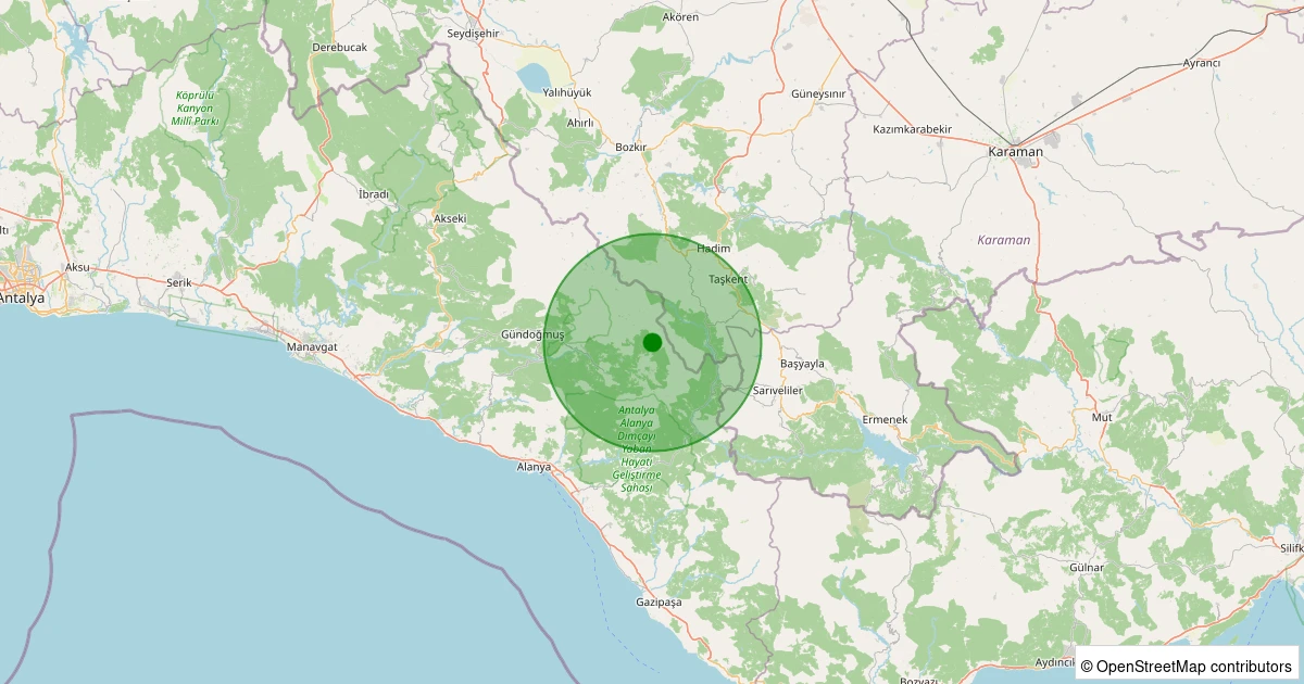 EMSC üzerinden alınan ölçümlere göre Gündoğmuş - Bedan Köyü bölgesinde 25.04.2026 00:12 tarihinde gece saatlerinde 1.4 büyüklüğünde bir deprem meydana geldi.