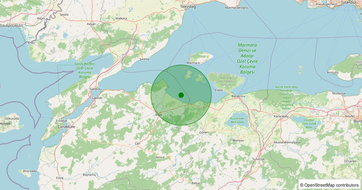 Kandilli üzerinden alınan ölçümlere göre BOZLAR-BIGA bölgesinde 25.04.2026 01:06 tarihinde gece saatlerinde 1.2 büyüklüğünde bir deprem meydana geldi.