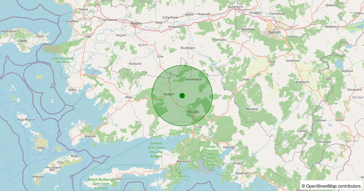 Son 7 gün içinde Yatağan - Deştin noktasından 100 km yarıçap içerisinde meydana gelen diğer depremler: