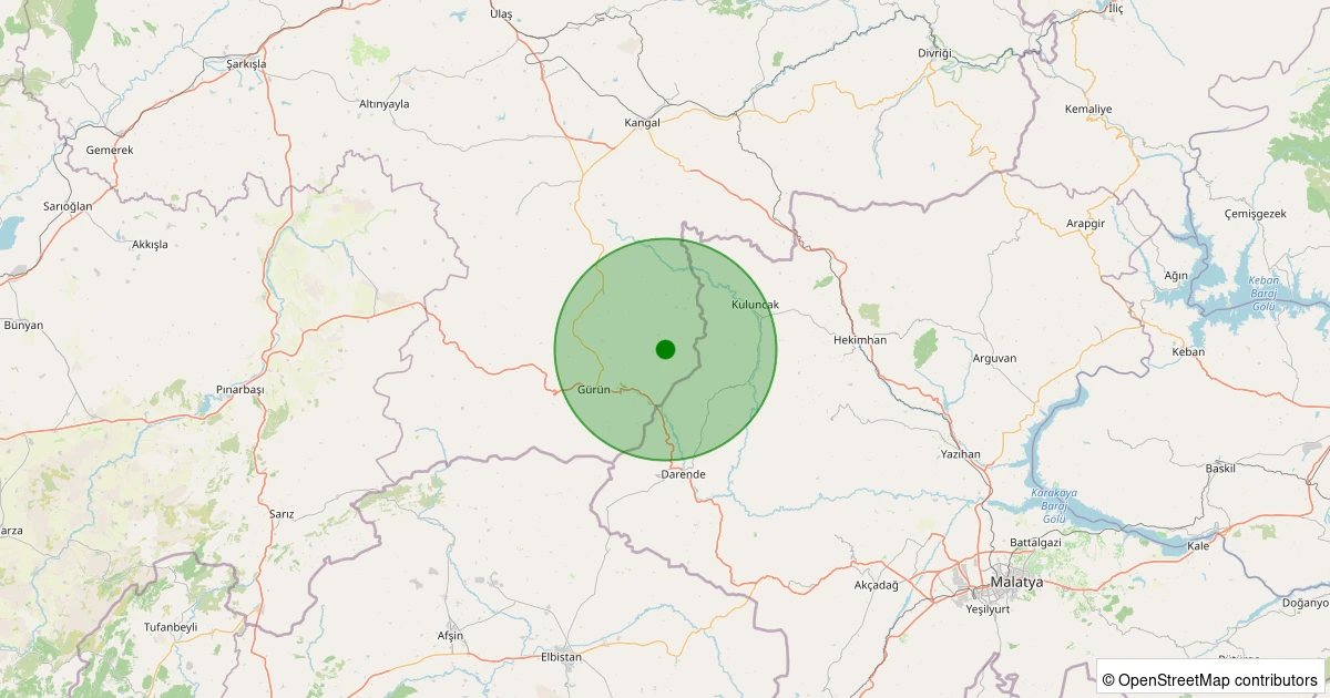 Son 7 gün içinde Gürün - Yuva Köyü noktasından 100 km yarıçap içerisinde meydana gelen diğer depremler: