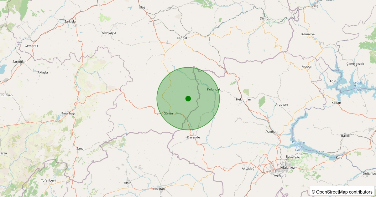 Son 7 gün içinde Gürün - Külahlı Köyü noktasından 100 km yarıçap içerisinde meydana gelen diğer depremler: