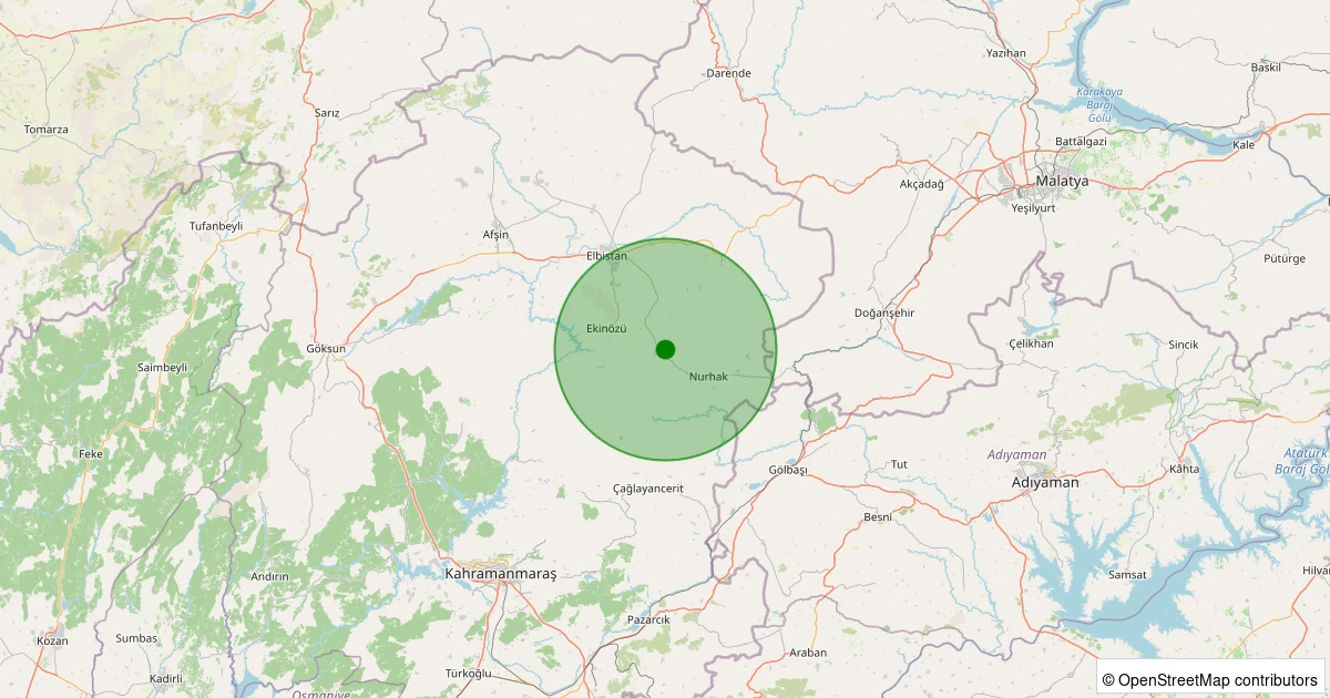 Son 7 gün içinde Nurhak - Derbent (Barış) noktasından 100 km yarıçap içerisinde meydana gelen diğer depremler:
