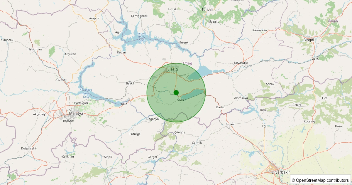 Son 7 gün içinde Sivrice - Cünt Köyü noktasından 100 km yarıçap içerisinde meydana gelen diğer depremler: