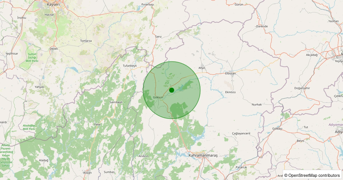 Son 7 gün içinde Göksun - Küçüksu noktasından 100 km yarıçap içerisinde meydana gelen diğer depremler: