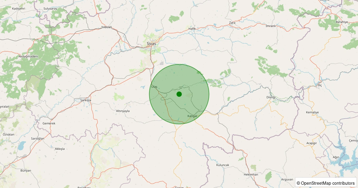 Son 7 gün içinde Ulaş - Eskikarahisar Köyü noktasından 100 km yarıçap içerisinde meydana gelen diğer depremler: