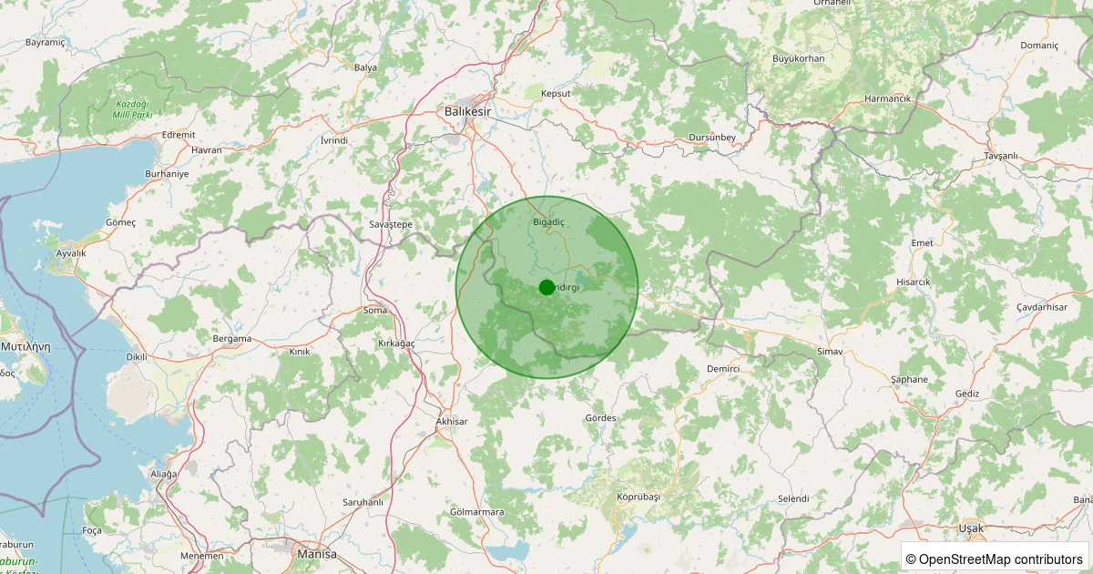 Son 7 gün içinde Sındırgı - İbiller noktasından 100 km yarıçap içerisinde meydana gelen diğer depremler: